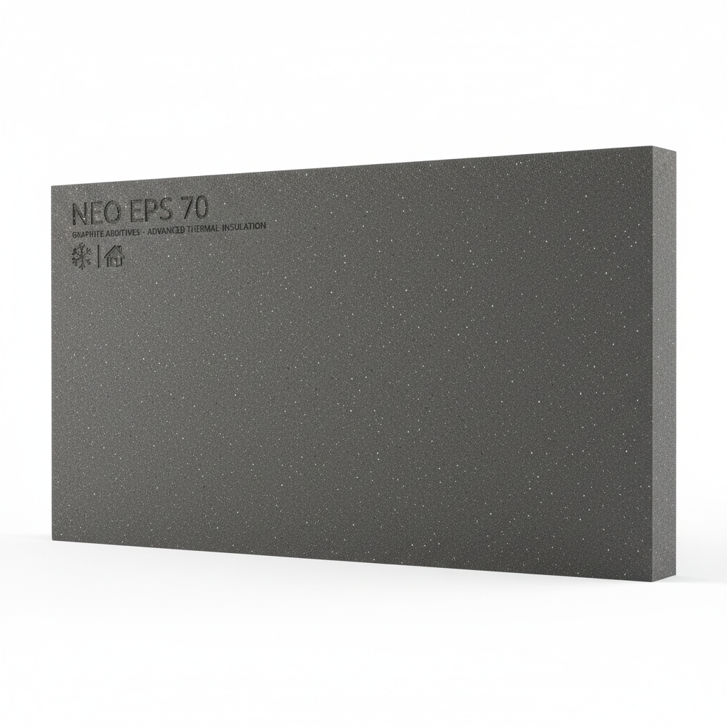 NEO EPS 70 – inovatyvus polistireninis putplastis su grafito priedais, užtikrinantis dar geresnę šilumos izoliaciją. Dėl to dažnai pasirenkamas, kai siekiama efektyvumo su plonesniu šiltinimo sluoksniu.